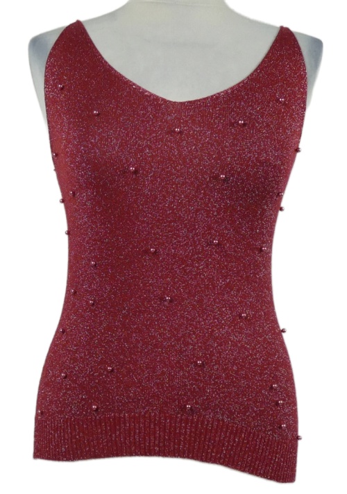 Dámský karmínový třpytivý pletený top s korálky