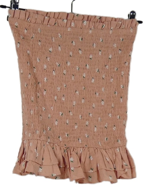 Dámský světlerůžový kytičkovaný žabičkový top s volánkem