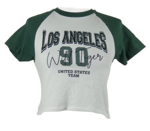 Dámské bílo-khaki crop tričko s nápisy a číslem Kiabi