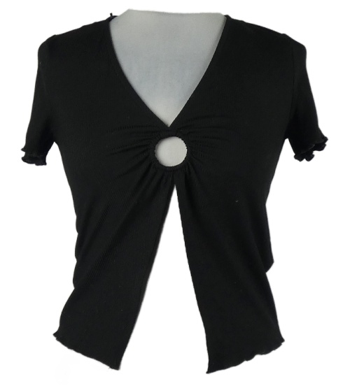 Dámské černé žebrované crop tričko s rozparkem New Look