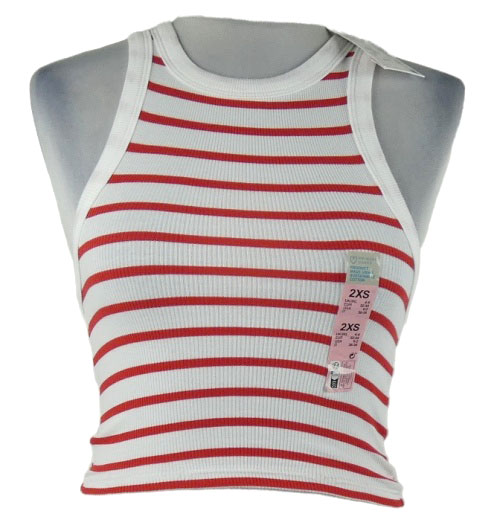 Nové - Dámský bílo-červený pruhovaný žebrovaný crop top Primark