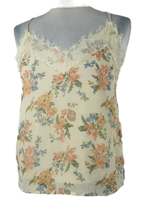 Dámský smetanový kytičkovaný top s krajkou Pigalle