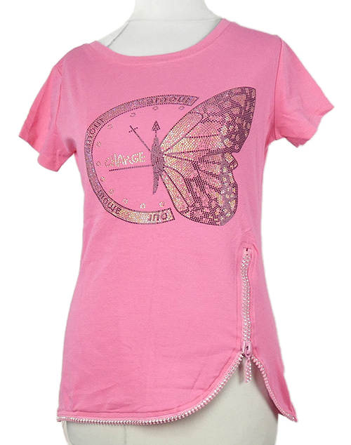 Dámské růžové tričko s motýlkem z kamínků