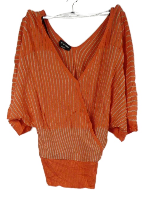 Dámské oranžovo-zlaté pruhované úpletové volné tričko Bebe