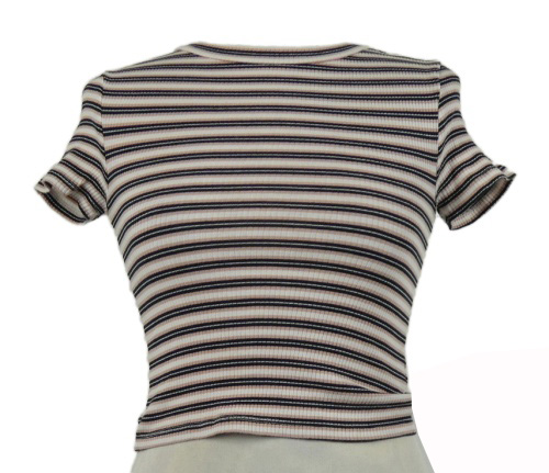 Dámské černo-růžovo-bílé pruhované žebrované crop tričko H&M