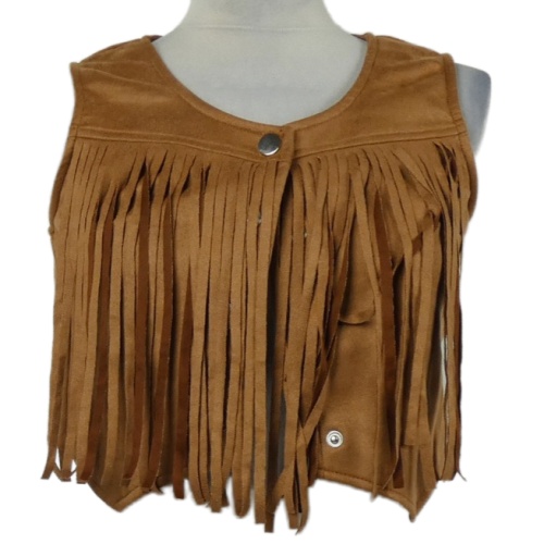Dámská hnědá semišová crop vesta s třásněmi