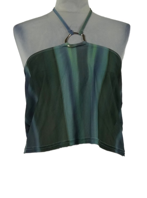 Nové - Dámský zeleno-modrý pruhovaný tylový crop top se sponou Ego