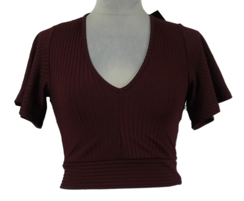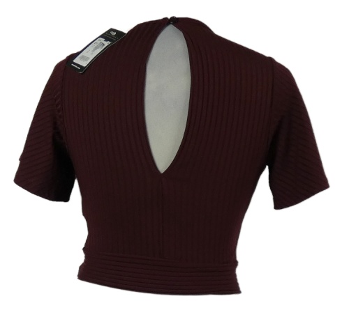 Nové - Dámské mahagonové žebrované crop tričko s průstřihem New Look