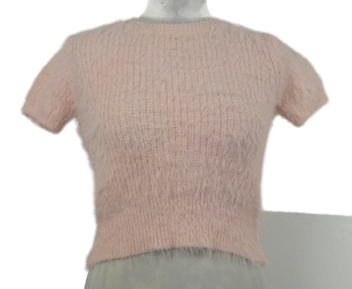 Dámské světlerůžové chlupaté pletené crop tričko Zara