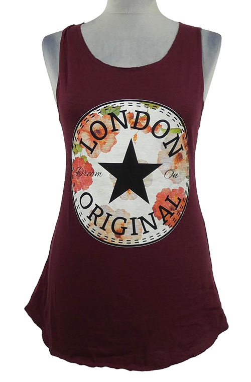 Nové - Dámský vínový top s potiskem Capital