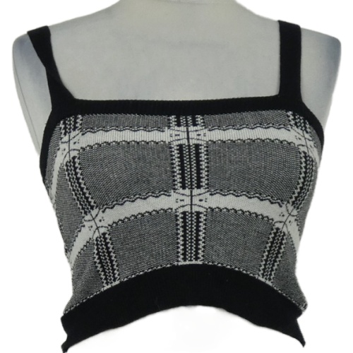 Dámský černo-bílý kostkovaný pletený crop top Shein