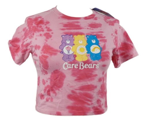 Nové - Dámské růžovo-tmavorůžové batikované crop tričko s medvídky