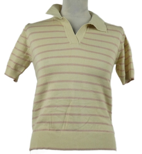 Dámské béžovo-růžové pruhované pletené tričko s límečkem Dazy