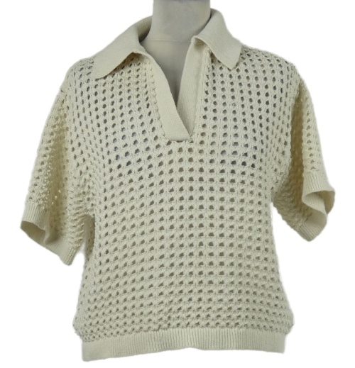 Dámské béžové ažurové pletené tričko s límečkem H&M