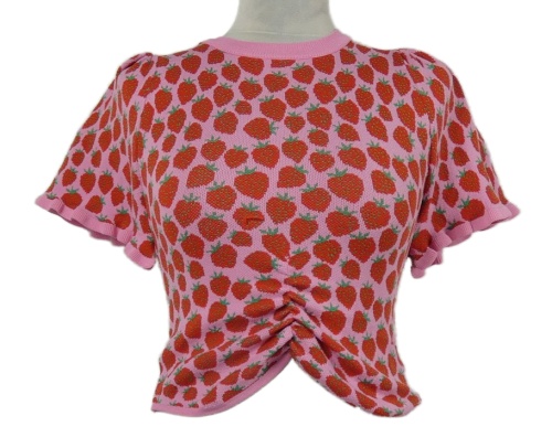 Dámské světlerůžovo-červené pletené crop tričko s jahodami Savida