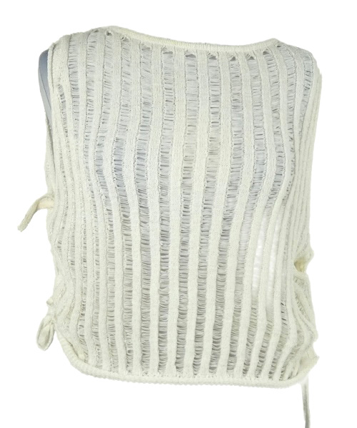 Dámský smetanový pruhovaný háčkovaný crop top se šněrováním H&M