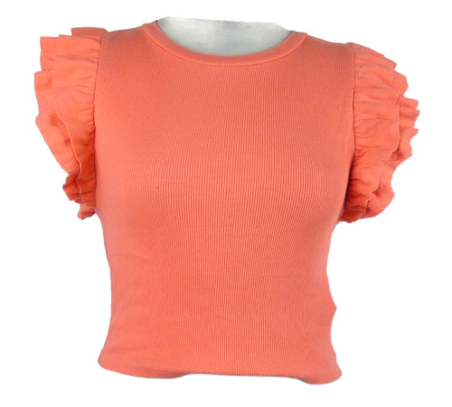 Dámské lososové žebrované crop tričko s volánky Zara