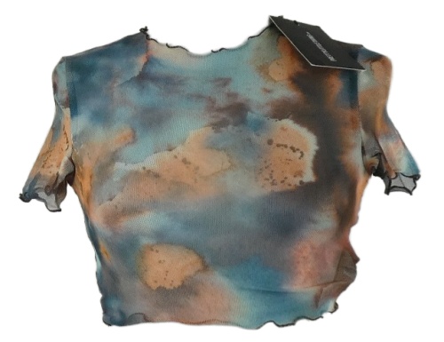Nové - Dámské modro-vínovo-béžové vzorované tylové crop tričko PrettyLittle Thing