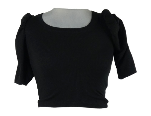 Dámské černé žebrované crop tričko s nabíranými rukávy Fullamoda