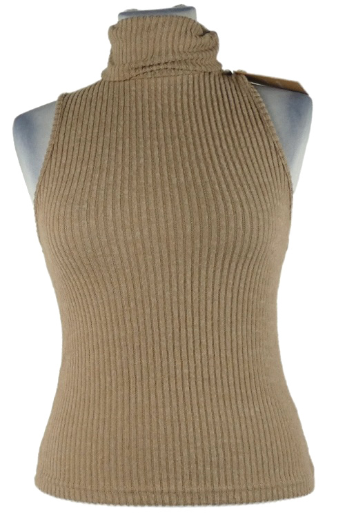 Nové - Dámský béžový žebrovaný úpletový crop top s rolákem Shein