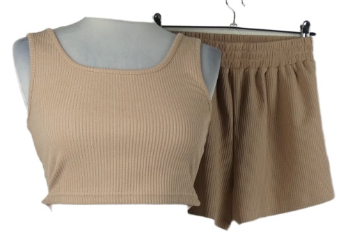 2set - Dámský pudrový žebrovaný crop top + kraťasy