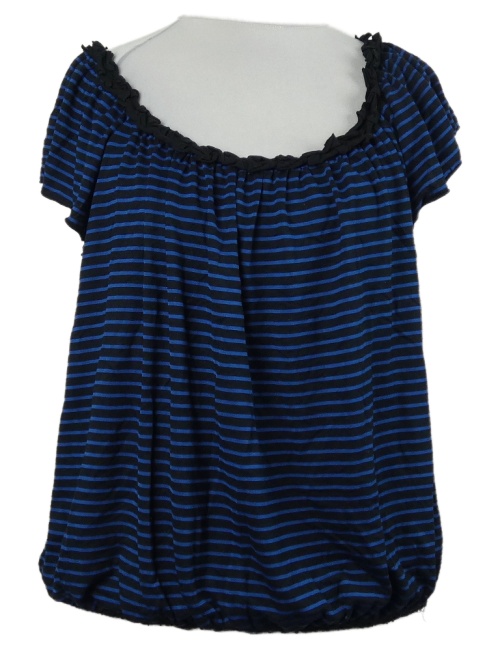 Dámské černo-tmavomodré pruhované nabírané tričko s lodičkovým výstřihem