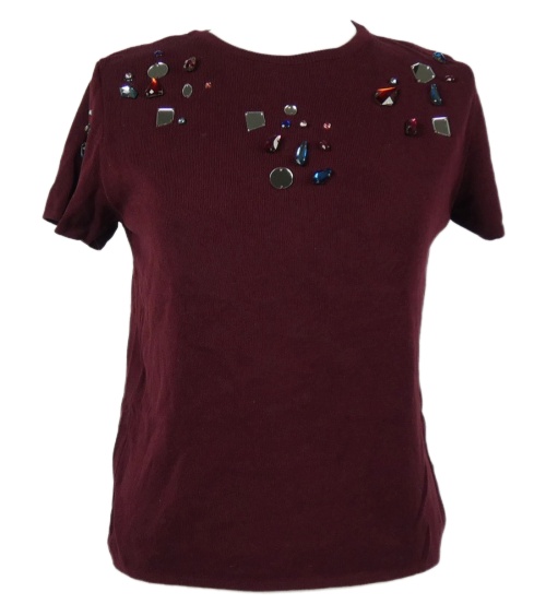 Nové - Dámské vínové pletené tričko a kamínky M&S