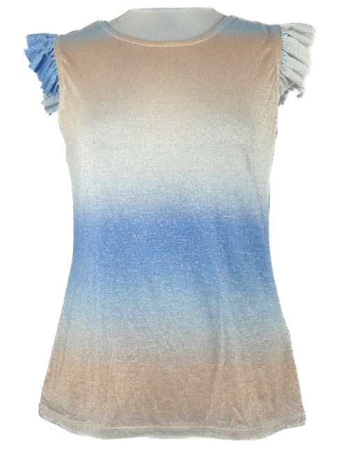 Dámské modro-béžová třpytivá tónová halenka s volánky