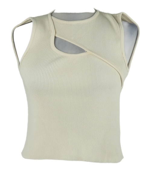Dámský smetanový žebrovaný crop top průstřihem Primark