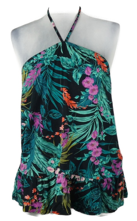 Dámský černý top s květy a zavazováním za krk Tu