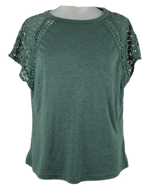 Dámské khaki tričko s krajkovými rukávy Shein