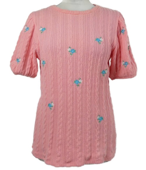 Dámské růžové kytičkované pletené tričko s kytičkami Savida