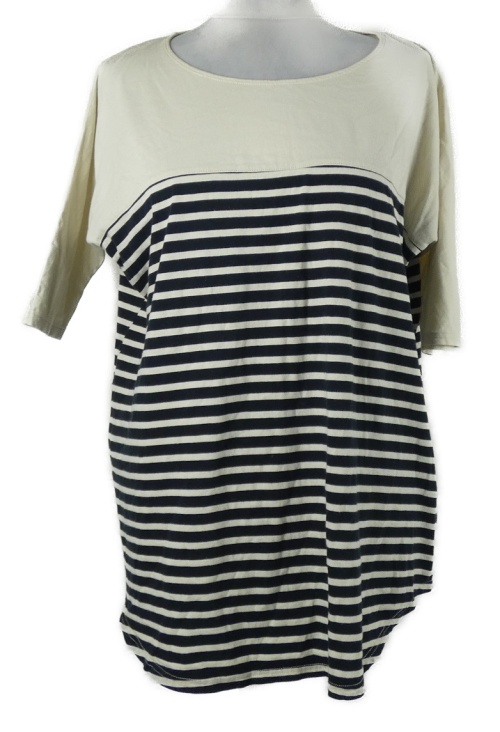 Dámské béžovo-tmavomodré pruhované volné tričko BDG