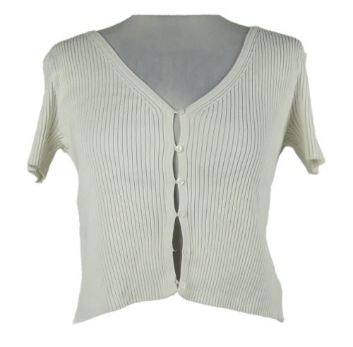 Dámské smetanové žebrované crop tričko H&M