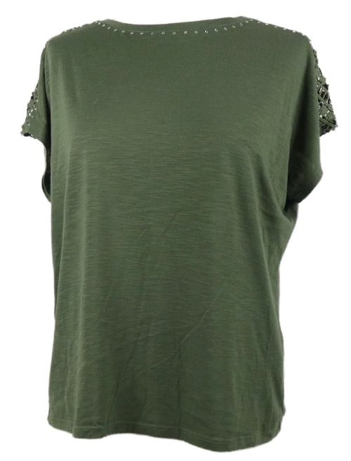Dámské khaki tričko s kamínky a krajkou Anna Rose