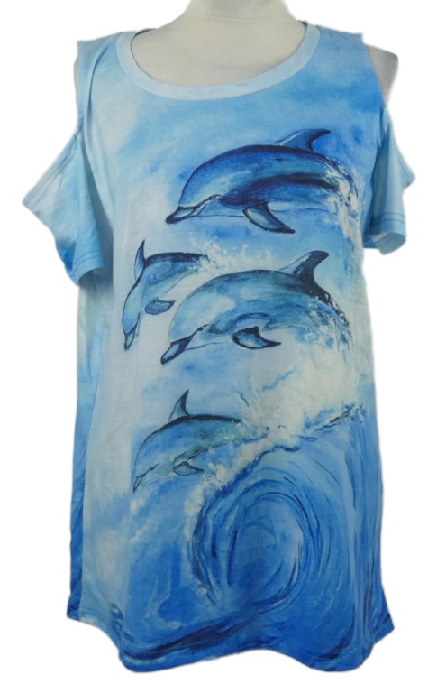 Dámská světlemodrá tunika s delfíny a průstřihy