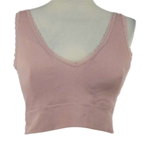 Dámská růžová žebrovaná braletka s krajkou