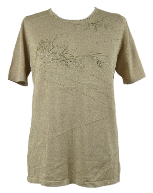 Dámské béžové třpytivé úpletové tričko s květy Ovanti