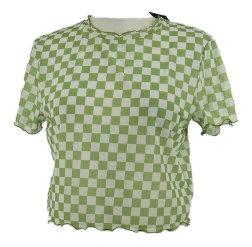 Dámské limetkovo-bílé kostkované crop tylové tričko Primark