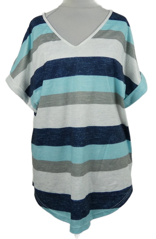 Dámské modro-tmavomodro-béžové pruhované volné tričko Shein