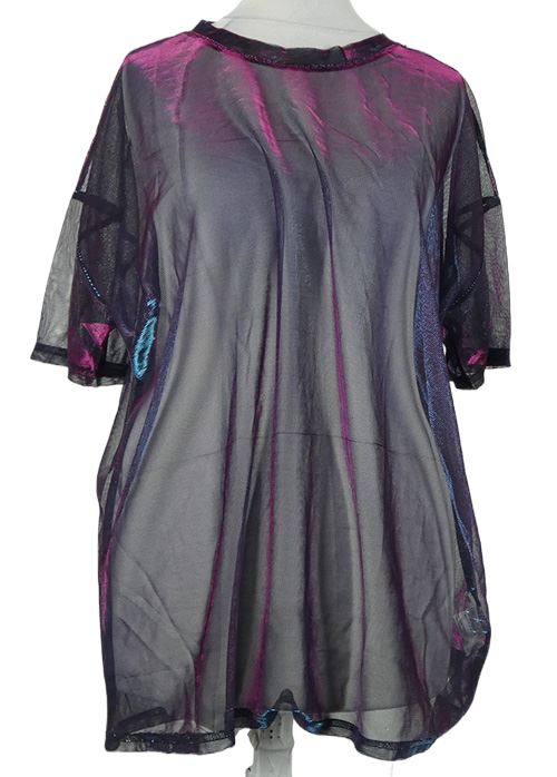Dámské černo-růžovo-modré metalické tylové tričko Shein