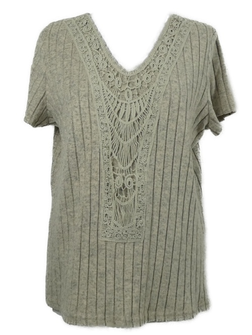 Dámské béžové žebrované úpletové tričko s krajkou