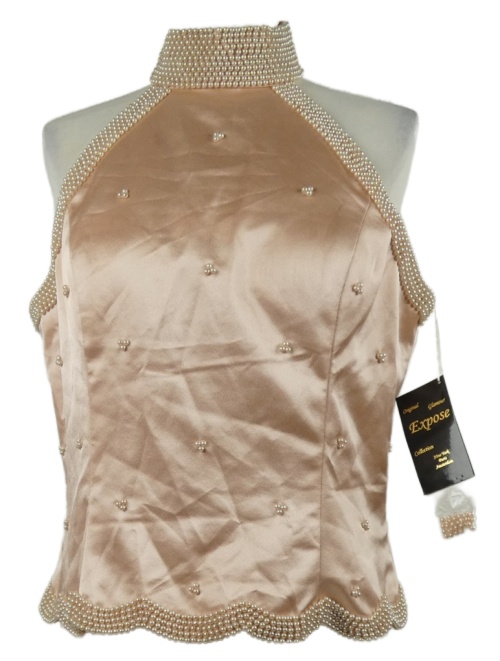 Nové - Dámský světlerůžový společenský saténový crop top s perličkami Expose
