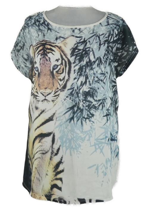 Dámské bílo-šedo-světlemodré vzorované tričko s tygrem Dorothy Perkins