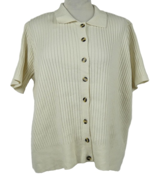 Dámské smetanové žebrované pletené propínací tričko s límečkem M&S