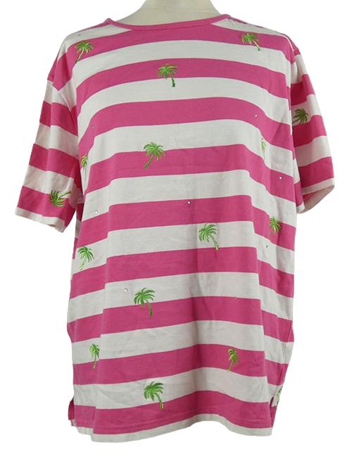Dámské tmavorůžovo-bílé pruhované tričko s palmami