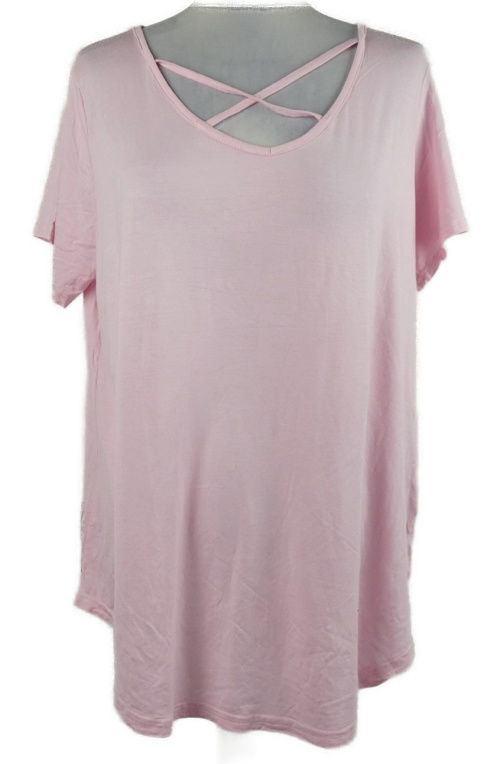 Dámské světlerůžové volné tričko se zkříženým výstřihem