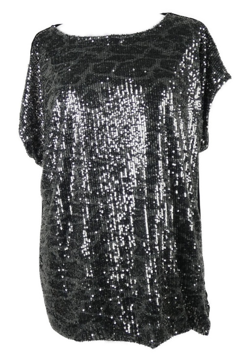 Dámské černo-stříbrné flitrové volné tričko Nutmeg