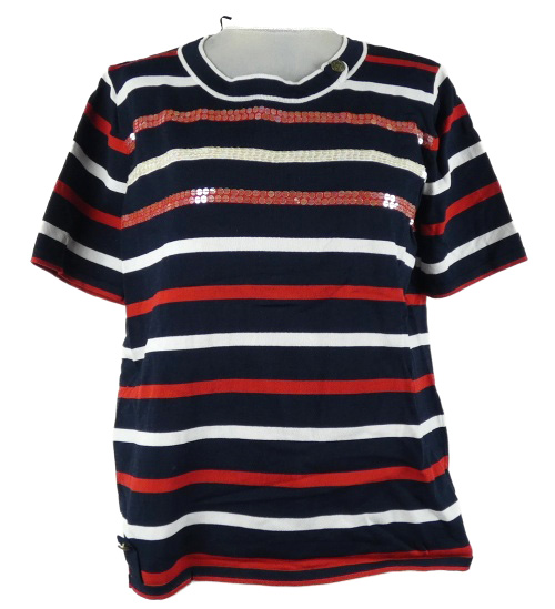 Dámské tmavomodro-bílo-červené pruhované pletené tričko s flitry Damart