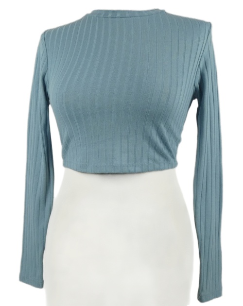 Dámské světlemodré žebrované úpletové crop triko Primark